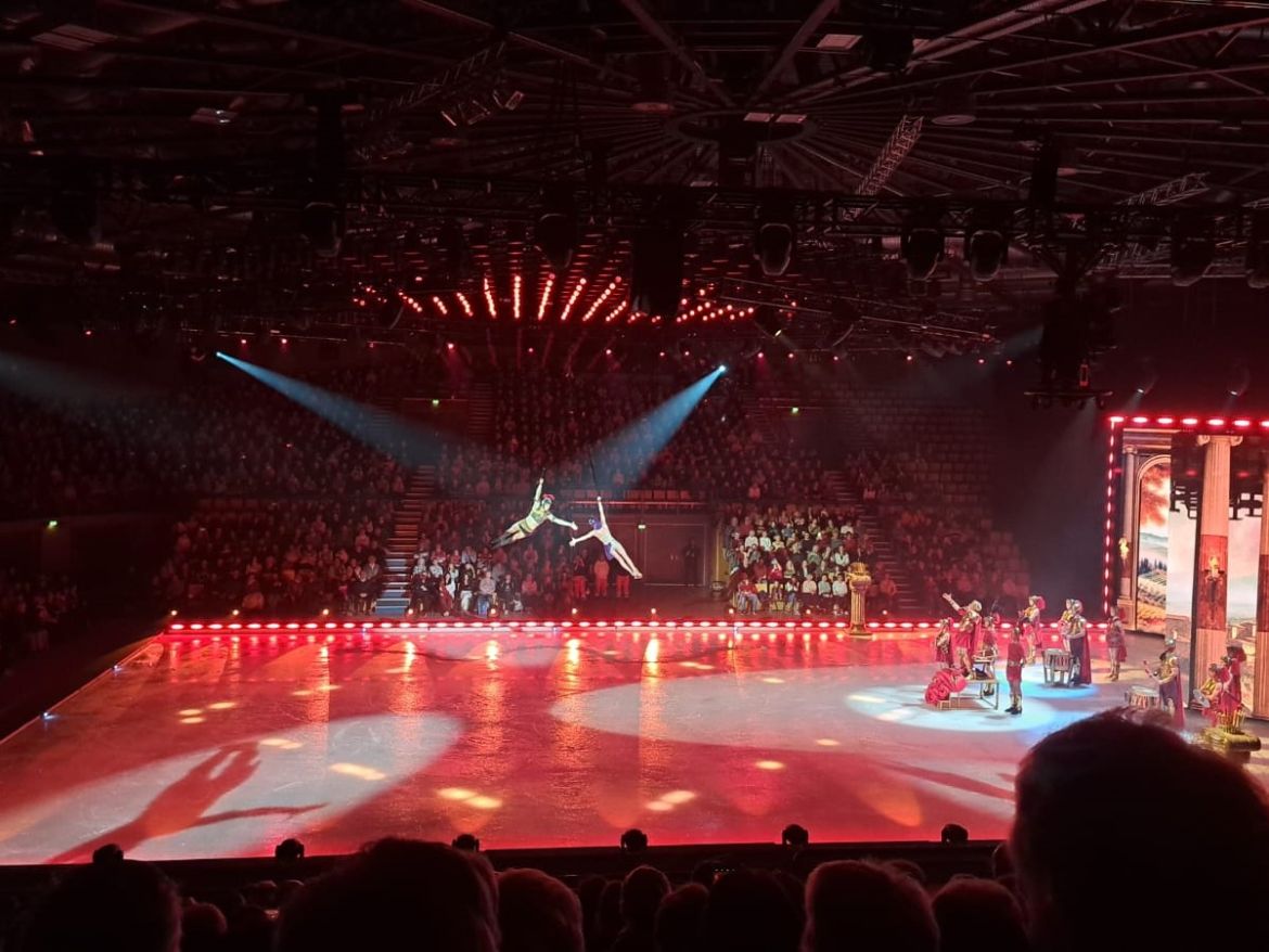 In der Stadthalle tauchten wir in eine fremde Welt ein: Bereits beim Eintreten in das Gebäude erreichte uns der unverkennbare Duft von Popcorn und Zuckerwatte, überall bewegten sich Scheinwerfer, das Eis funkelte und die Vorfreude der Zuschauer war beinahe greifbar. Schließlich ging das Licht aus und die Show startete mit mystischer Musik, gefolgt von einem Spektakel des Eiskunstlaufs. Mit Elementen aus Theater, Tanz und spektakulärer Akrobatik wurde das Publikum von den Choreografien der Eiskunstläufer begeistert und von der tollen Stimmung mitgerissen. Atemberaubende Kostüme, spannende Videoprojektionen, beeindruckende Paartänze und unerwartete Showeinlagen versetzten das Publikum ins Staunen. Bärbel saß in der ersten Reihe, sozusagen „mittendrin im Geschehen“ und ließ sich von dieser magischen Welt verzaubern.